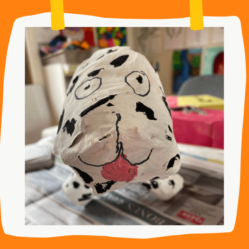 In the second session they will paint their animal or monster and begin planning and making the additional features – feathers, scales, eyes, fluff to a tail, buttons, a water bowl, a tree or whatever else.
